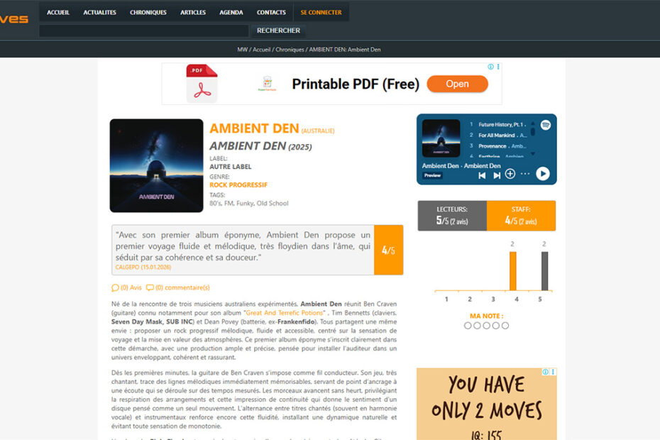 “Avec son premier album éponyme, Ambient Den propose un premier voyage fluide et mélodique, très floydien dans l’âme, qui séduit par sa cohérence et sa douceur.”